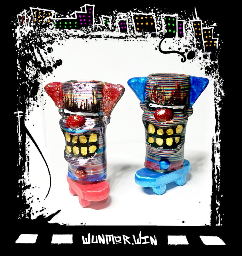 1 of 1 Wunmo the clown plastic lighter caseCan be ordered by itself or with a mystery color fidget deck magnetic accessory• Handpainted • MagneticCatalog